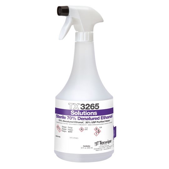 Sterile, ready-to-use 70% denatured ethanol (EtOH) solution designed especially for cleanroom use. Filtered to 0.2 µm, individually double-bagged and gamma-irradiated to ensure sterility. Made using USP components and packaged in an ISO Class 5 cleanroom.