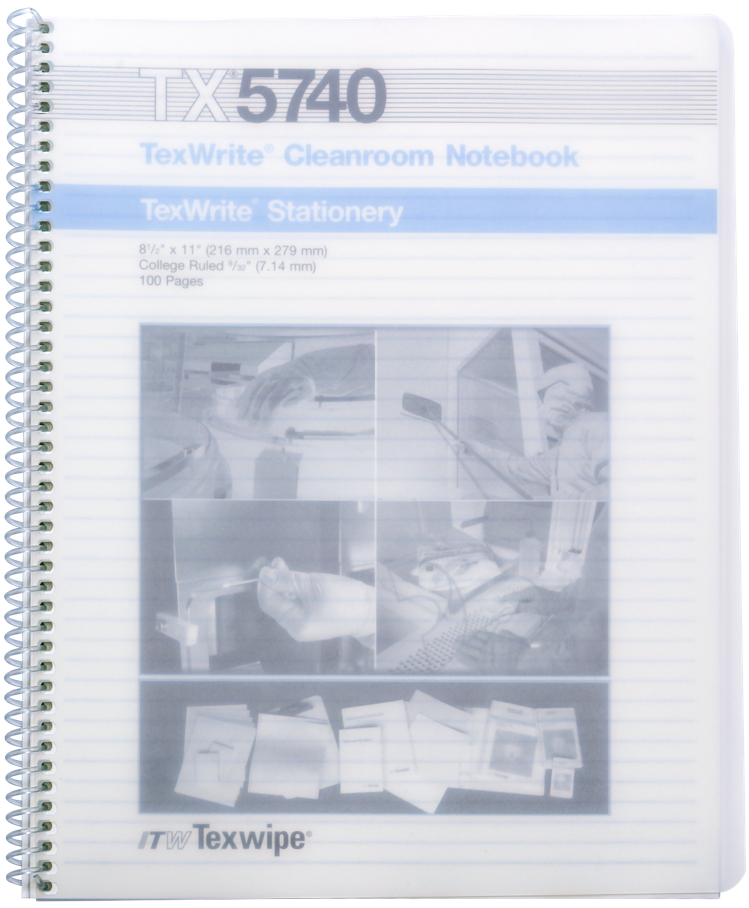 TexWrite® spiral-bound cleanroom notebooks are used for note taking and data recording in the cleanroom. These cleanroom notebooks feature high-density polyethylene covers, plastic spirals and durable TexWrite® copolymer cleanroom paper. Pages are printed with IPA resistant, low-sodium ink for reduced ionic contamination. Notebooks lie flat and pages rotate freely for ease of use.