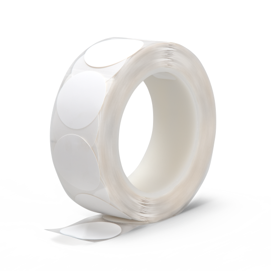 Size: 1.5" round, 3" polyethylene core Packaging: 500 labels/roll Packaging: 4 rolls/case Packaging: 2000 labels/case