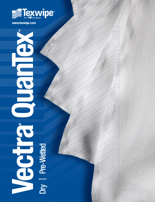 Vectra® QuanSat™ pre-wetted cleanroom wiper is made from 100% polyester with a sealed border, processed on Texwipe’s automated cleaning system.